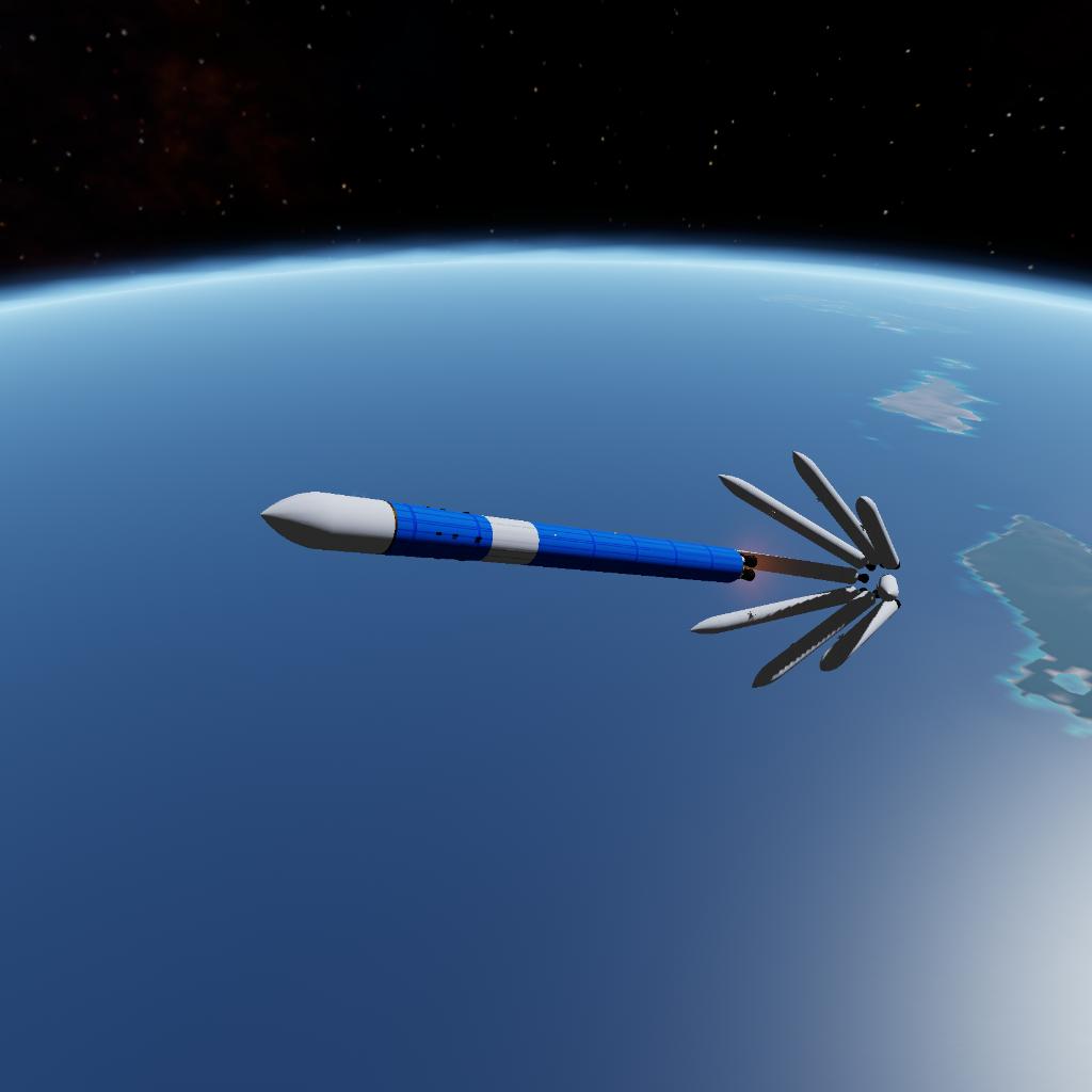 introducing the Centurion rocket! hugely inspired by Delta II, it is designed to get to Geosychronus(Droo) orbit(attitude should be about 8863KM, and speed should be about 1252m/s) it has 8 SRB’s, center core powered by four SL-28C engines, they would power the rocket all the way to space, stage two is powered by one Cvac-28E.