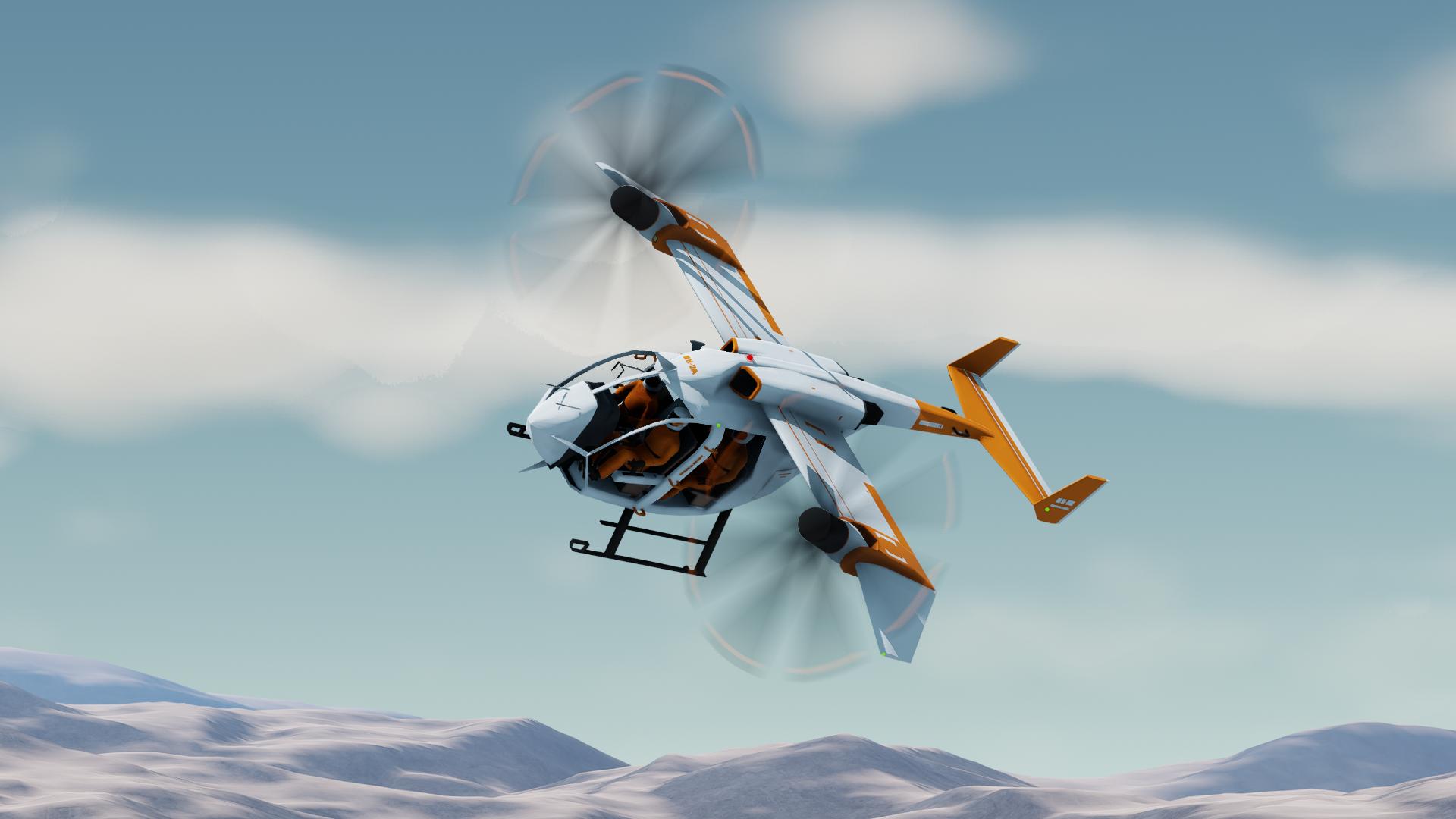 The MH-2A is the result of our engineers working hard and snorting hard (metaphorically) to convert the famously maneuverable MD500 Little Bird into a Tiltrotor Helicopter. Said result is presented here as the MH-2A; nicknamed "Fast Bird" (very creative). A faster helicopter while maintaining the dimensions and capabilities of the original bird.