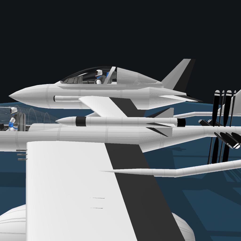 The CPW-92 airborne defence platform is a prop drivin twin engine counter rotating propellor aircraft designed for recon, defence and deployment of the M-82 minijet that is equipped with 2 20 cal explosive machine guns and 2 missiles, the CPW-92 is equipped for dogfighting only with 6 machine guns, it was designed in the 1980s, it can and has been upgraded with missiles, the minijet, the engines etc. If its defence, its the CPW-92 with twin bomb pods