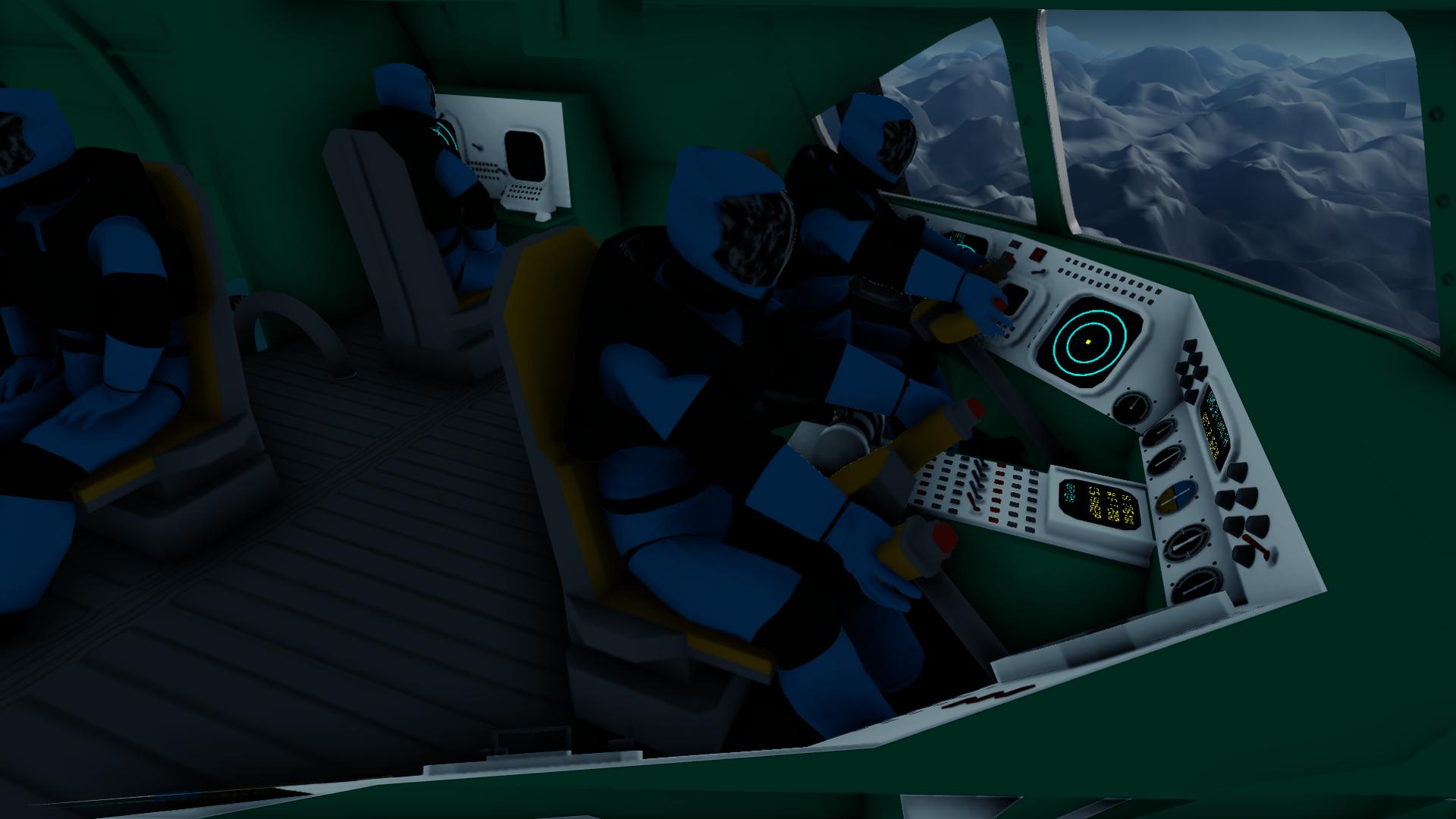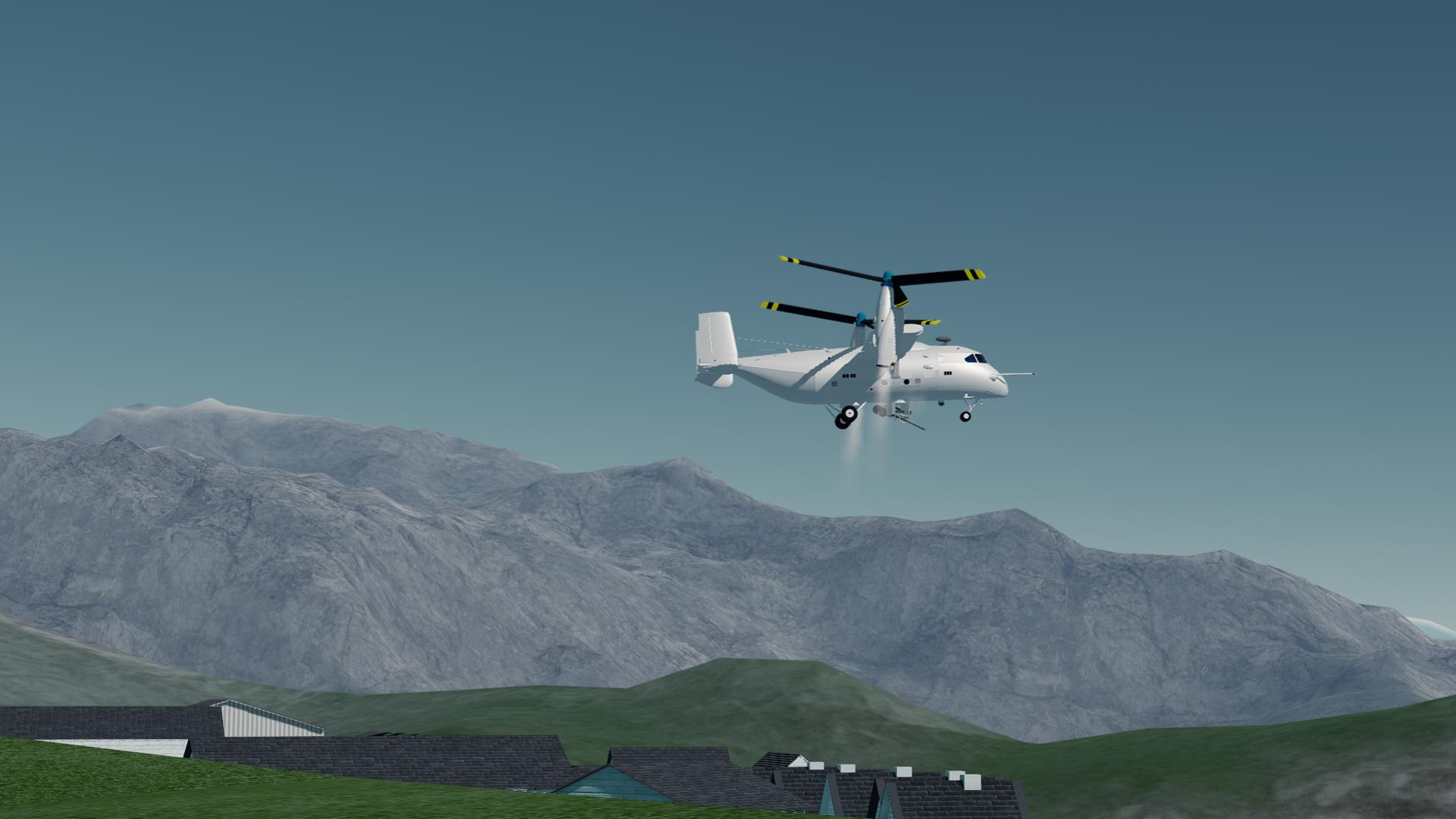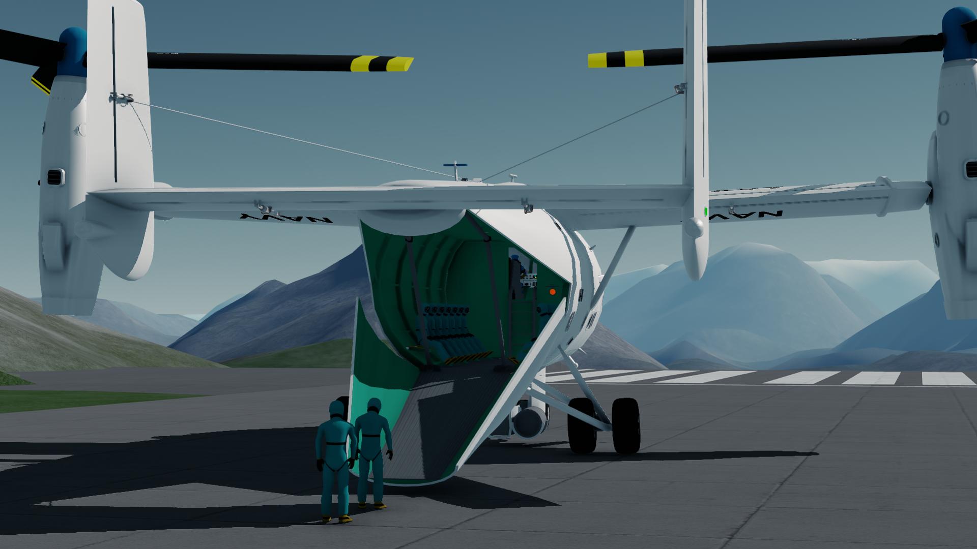 A tiltrotor all-weather aircraft, armed with a 50mm autocannon and a capacity of 18 passengers (plus the pilot, copilot, WSO and RSO). Its primary use is to deliver armed troops and support them with its gun. Effective against both unarmored and medium-armored enemy units, although it can knock out MBTs or weapon systems of enemy gunboats. It can carry up to 15 tons of cargo. Capable of taking off/landing from rough terrain, thanks to its fixed and robust landing gear. It's main weakness is anti-air weapons, but it has great durability thanks to its armor and redundant equipments.