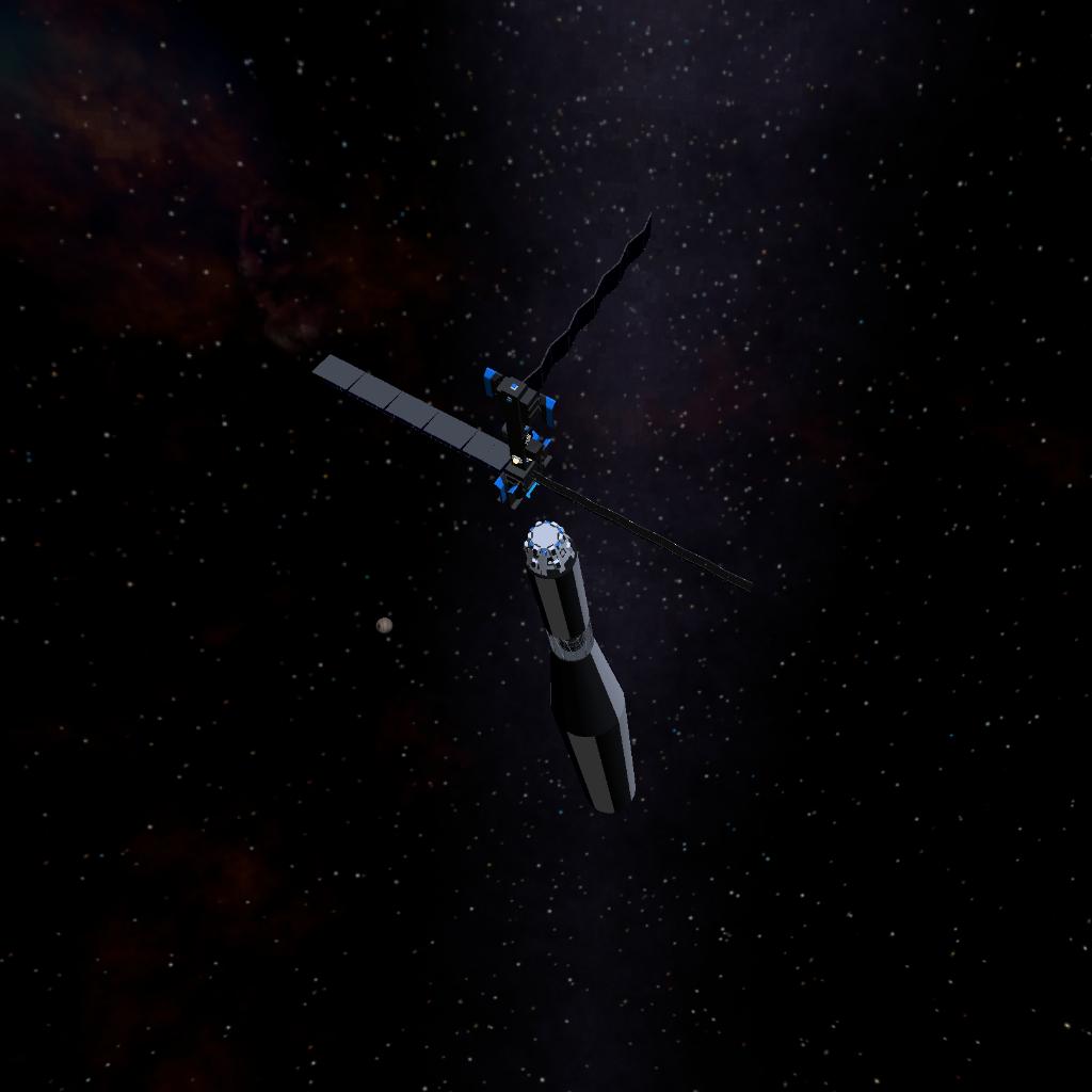 A multistage rocket carrying a satallite and crew compartment made to orbit the earth and survive re-entry if done correctly. The satallite has three solar arrays, four lights, a MFD, and cameras that cover multiple views from the craft.