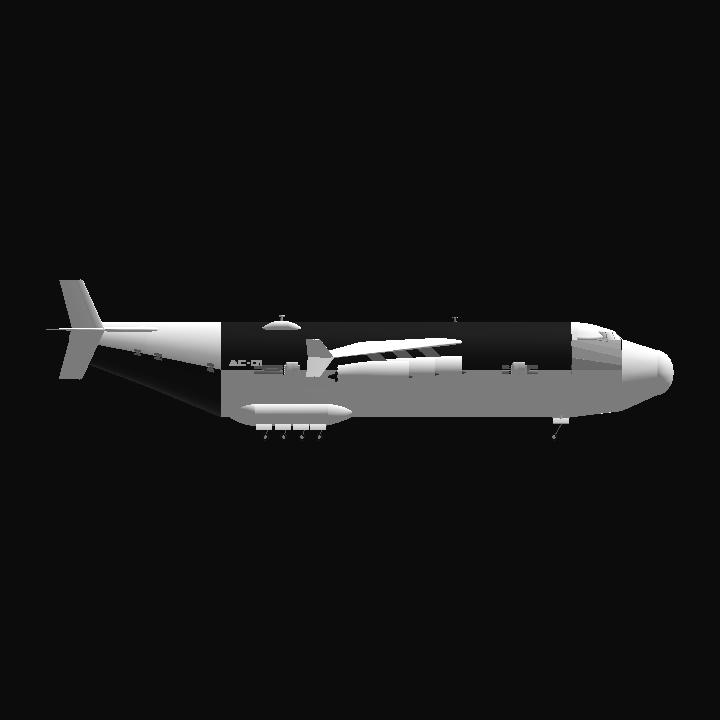 The AC-01 is an air-launched aircraft designed to transport and release experimental vehicles at high altitude. Its primary mission is to serve as a launch platform for the Atlas-IX Aurora, (the three variants being Aurora-A, Aurora-B and Aurora-T) the AX-21 Tempest (under development), and experimental cargo over the fuselage and inside of his cargo bay, such as stages of the Atlas-VIII Heavy, enabling subsonic and orbital flights from approximately 10 km altitude and at high initial speed.