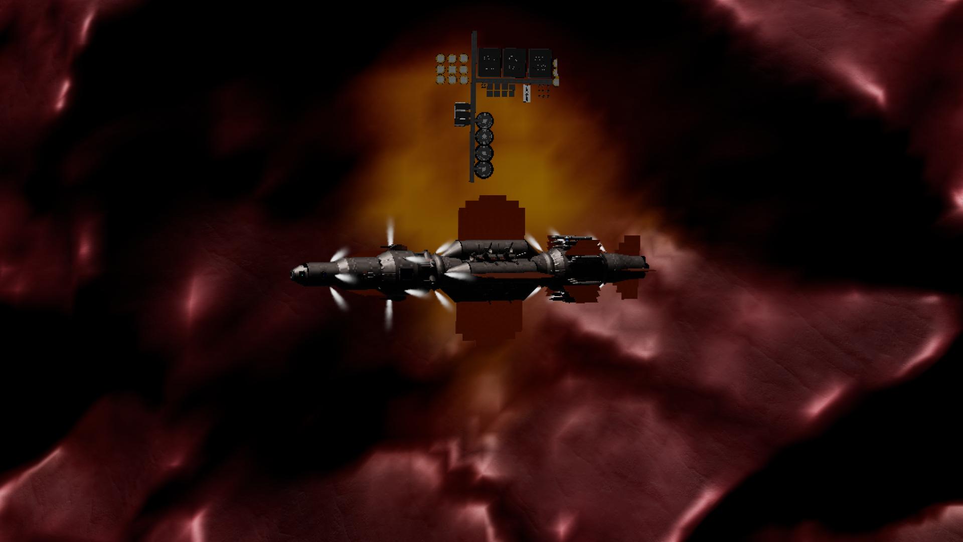 Eventually the 2nd Salvo from the Mallet hits...this time 5 out of the 8 missiles hit, 2 intercepted and 1 missed due to a malfunction...2 have hit a heat panel, tearing it like paper, another hit a solar panel array, the 4th hit a comm and sensor hub, destroying it, while the 5th one, hit a missile silo, causing 2 of the rear ones to explode and the other 4 within the bay to get destroyed into various fragments...the explosion heavily damaged the botton auxiliary thrusters...now the carrier only had 3 more torpedoes left to fire