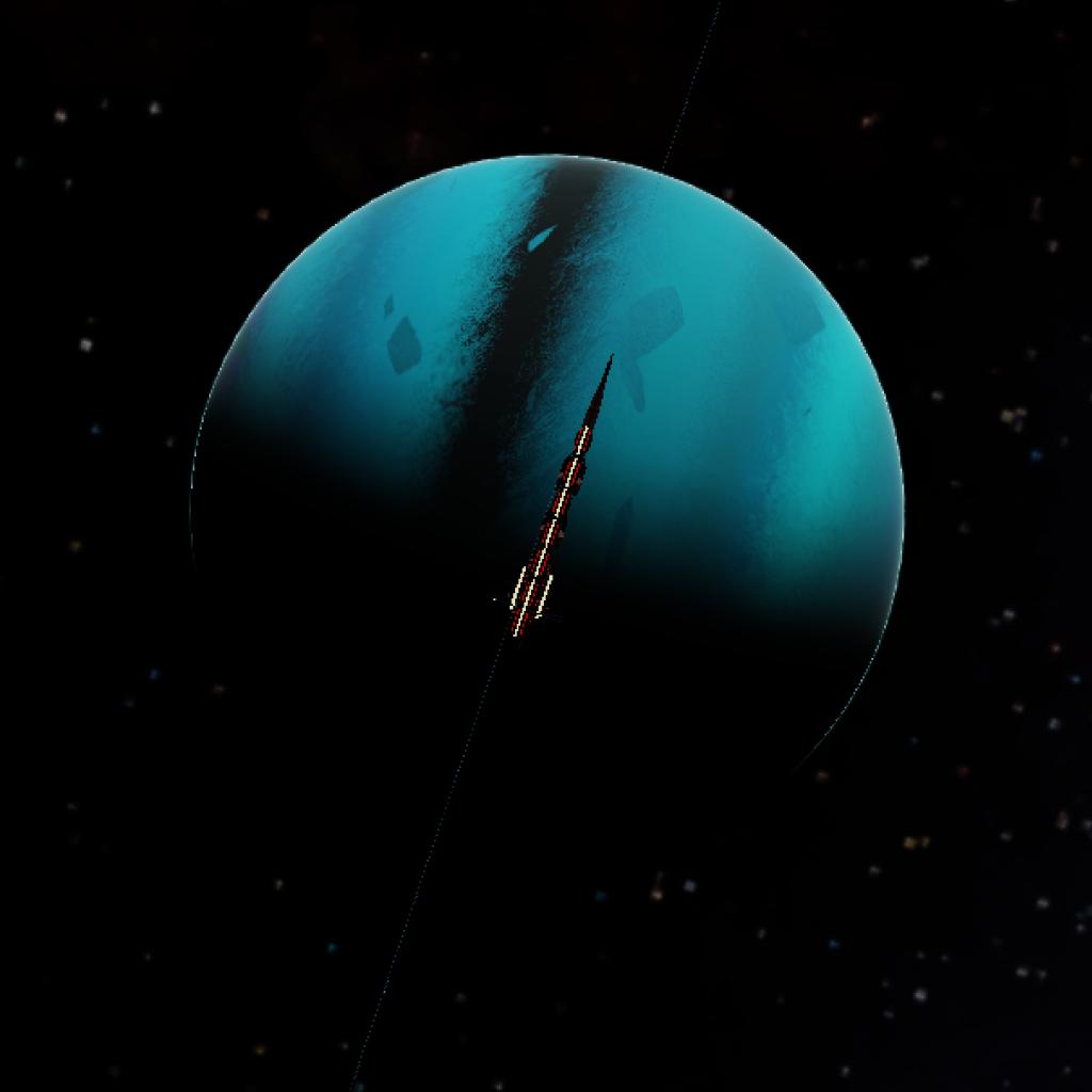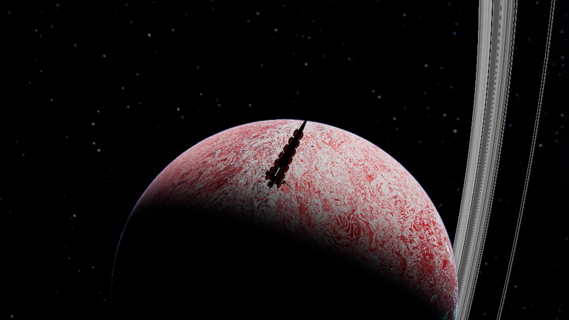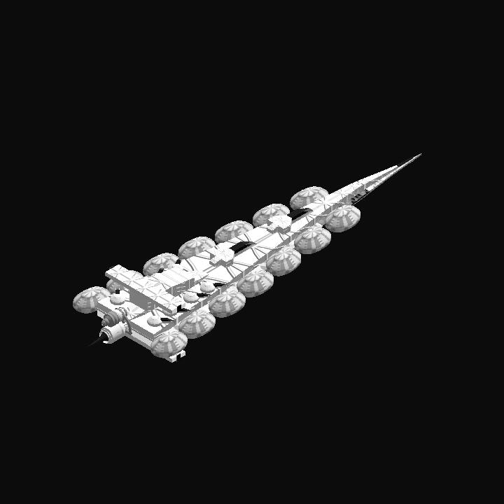 Designed by the young Coalition of Jovians in order to try partake in the flesh war to atleast contribute in some manner due to the Etosians calling them "Cowards" (like they had anything better to do). These small, albeit dangeroud and quick battlecruisers were meant to tick every box, to ensure the young coalitions resources werent going to be wasted. This ship is a unique one, often following bay principles instead of a turret heavy design. These ships primarily rely on heavy cutting laser technology and plasma beam technology in order to defeat foes. This ship hosts 4, single barrelled UH (Ultra heated) heavy plasma bolt  cannon turrets, meant to decimate most things, 12, single barelled encaeledus medium laser CIWS Turrets, 2 intergrated UH Plasma beam cannons and many bays (the bubble things on the outside), each containing 2 Jupiter class heavy cutting lasers and 2 Neptune class medium CIWS lasers. Many of these were produced, yet unfortunately too late to enter the flesh war. The Coalition now uses them as security and patrol vessels, these ships often excel in destroying hostile pirate stations and ships.