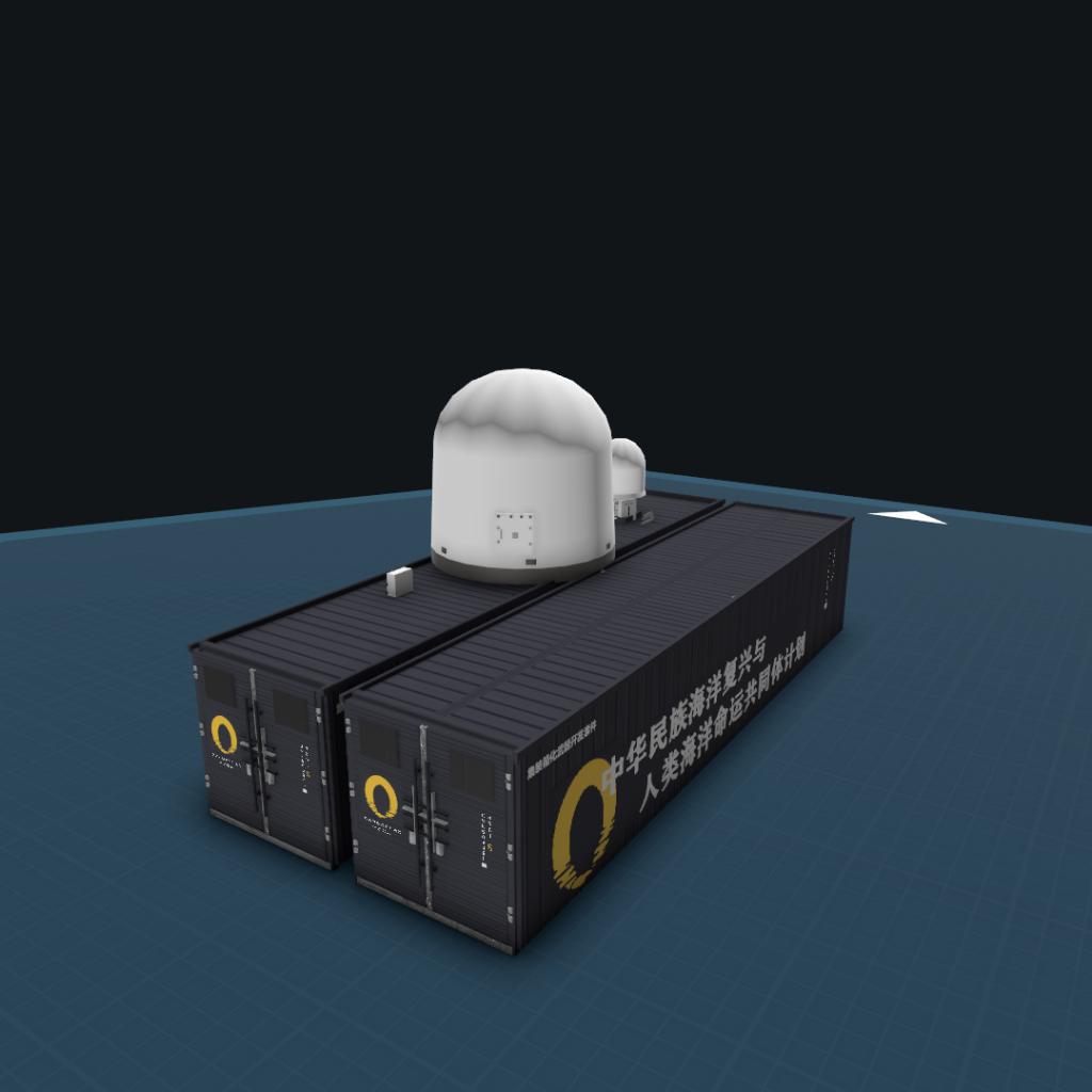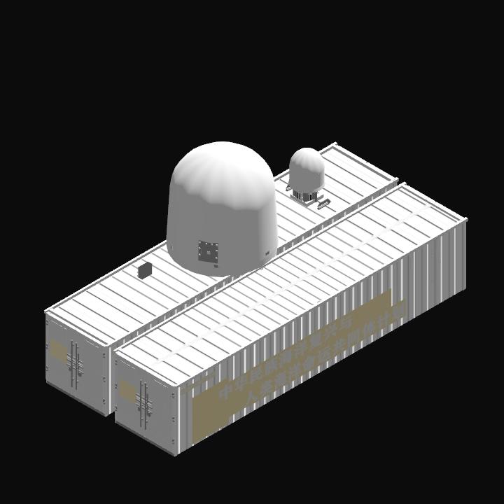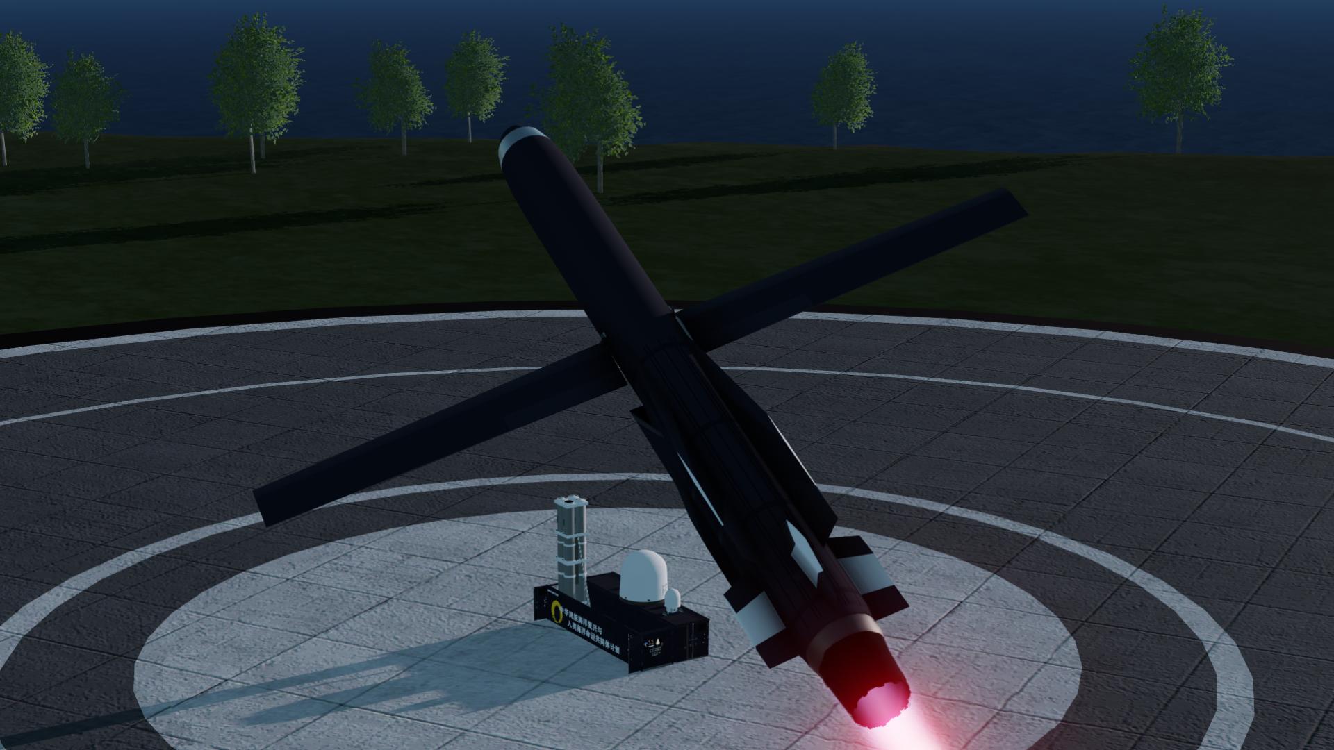 This is a containerized weapon development module kit. It has a radar container and a quadruple-launch cruise missile system. Use Activation Group 1 to open the hatch, Activation Group 2 to erect the launch rack, and Activation Group 3 to fire the missile. Switch to the missile's view and use Activation Group 4 to deploy the fins