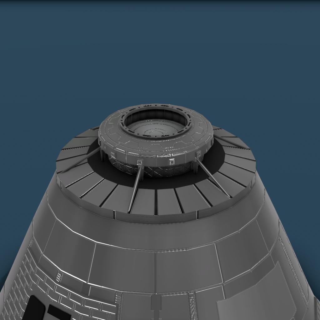 This is my first custom docking port. Its advantage is that it makes the stock docking port more aesthetically pleasing and fits the capsule's size without changing the port itself. Enjoy!