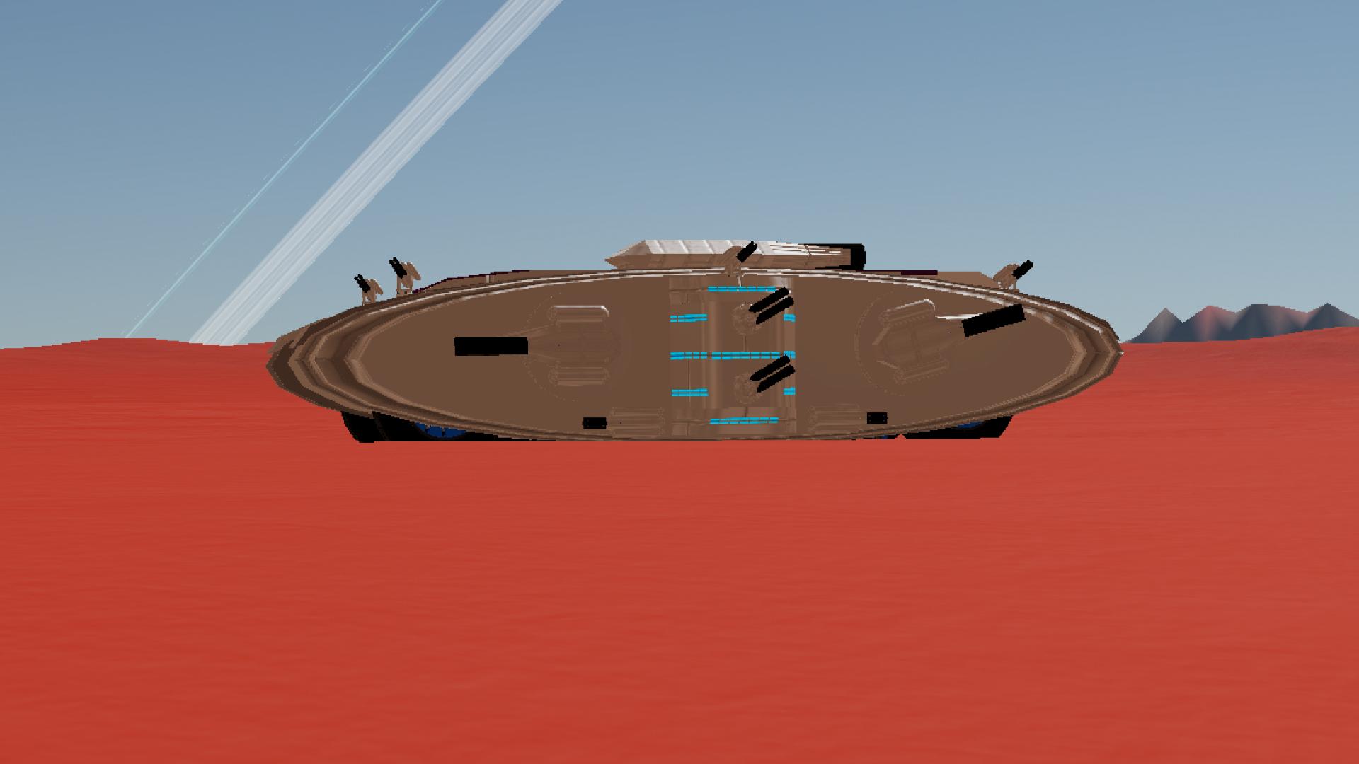 The Enidor Class Heavy landship remained as a concept ever since The Red Imperium has chosen to go on the path of Conquest during the Nennekor Planetary war (started after the shattering...will elaborate further when I post nennekos itself) in order to try make the "1 Unit for All Jobs" which doesn't need high numbers to achieve this brief, hence engineers came up with the Enidor Class landship, on paper it fit the brief perfectly, despite having external hydrogen tanks on most turrets (although they are thick and heavily armoured), this ships advantages had outweighed its disadvantages majorly, especially its speed of 60 m/s (it really goes that fast...I've tested it enough times to know, it doesn't accelerate fast upon starting yet it does much later). 2 years later after the siege of Konnodoris (the capital of The Kol Federation, this siege spelled the factions extinction), production and resource capacities have increased very much due to the Conquest of the Federation and a mining expansion initiative, leading the Imperium to produce the first fleet of 3 of these landships, the RI Enid, the RI Messenger and the RI Artisan. Thanks to the construction of these ships, the Red Imperium has expanded greatly, taking territories, defending against sieges, destroying enemy outposts, military bases, hostile space factions reconnaissance fleets and becoming the most powerful and feared faction of Nennekor.