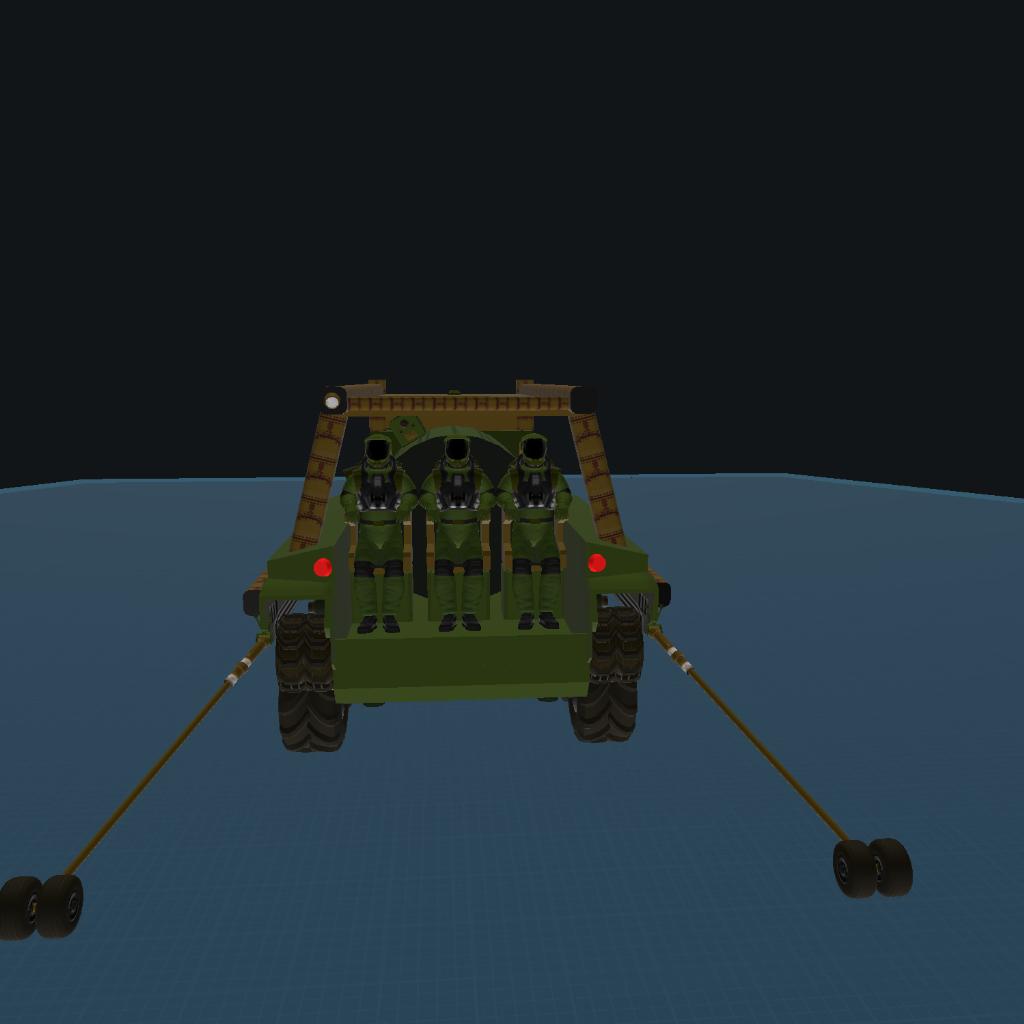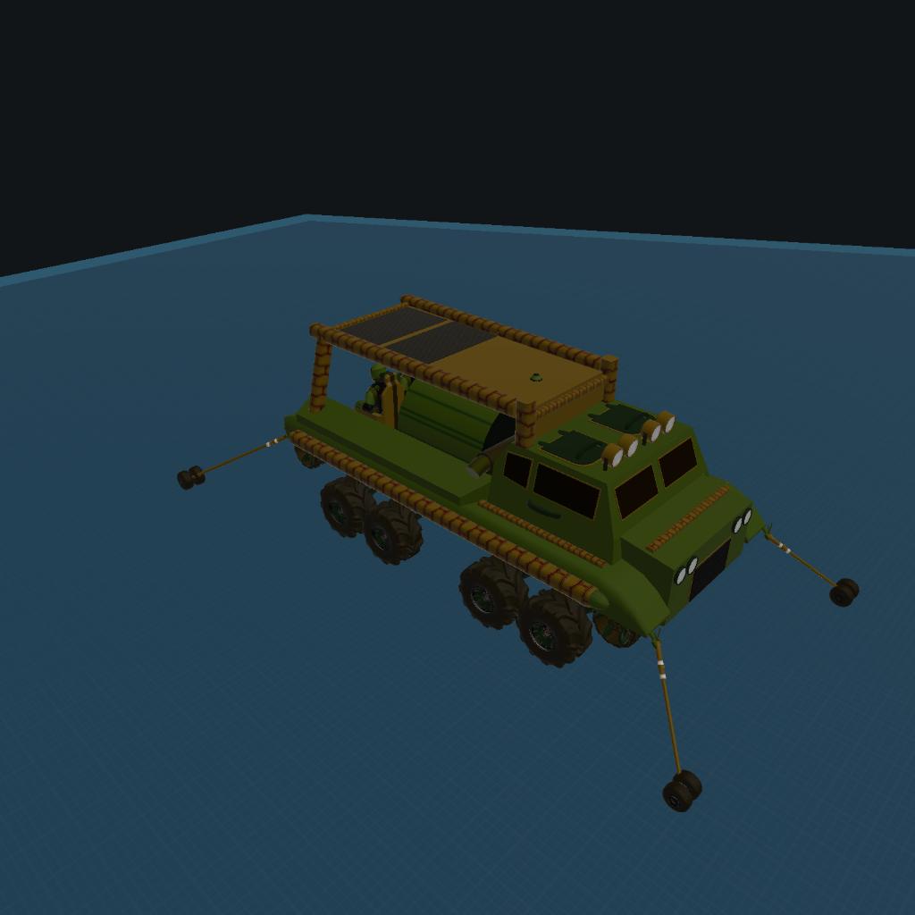 My military truck but with stanilizers, things to flip it back over and a parachute i used tinker panel in to make smaller. But have the same amount of darg to sliw it down like a large one. How you like it.