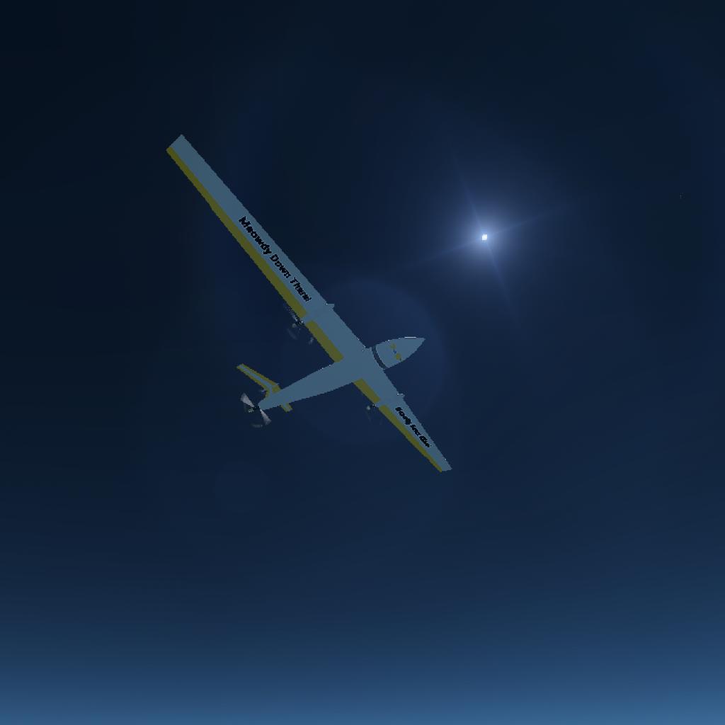 She can fly for a VERY long time if you know what to do. Once you get really good, and if you have a good start, you could probably fly for days in a row if you had the time and skill. Fly under daylight if you can (Solar power, shockingly efficient), carry fuel for the fuel cells on long flights just in case it gets dark.