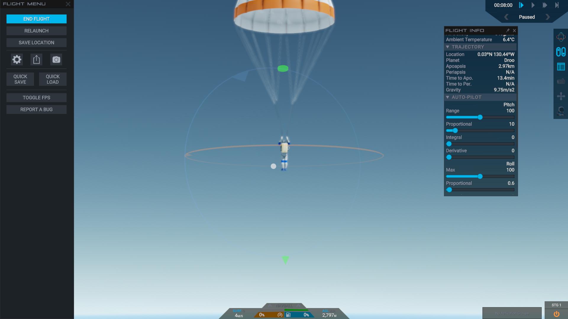| Life Support Mod Demo Craft | Droo | 75 | 80,000kg | 1,364 km | 2.84 km/s |