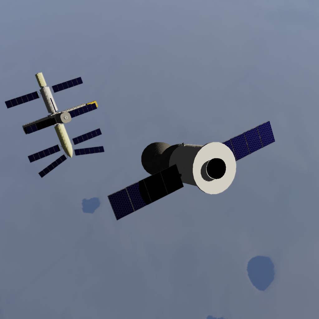Docking in space requires precise maneuvering to align two spacecraft, usually involving, in order, rendezvous, station-keeping, and final, slow-speed, thruster-controlled contact.